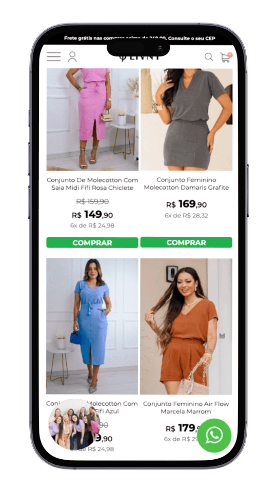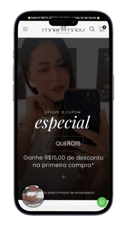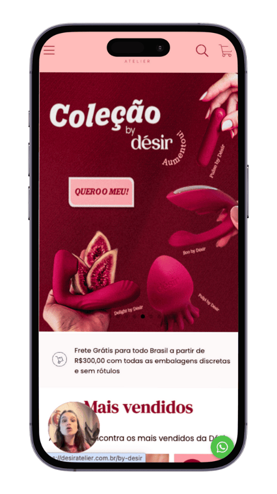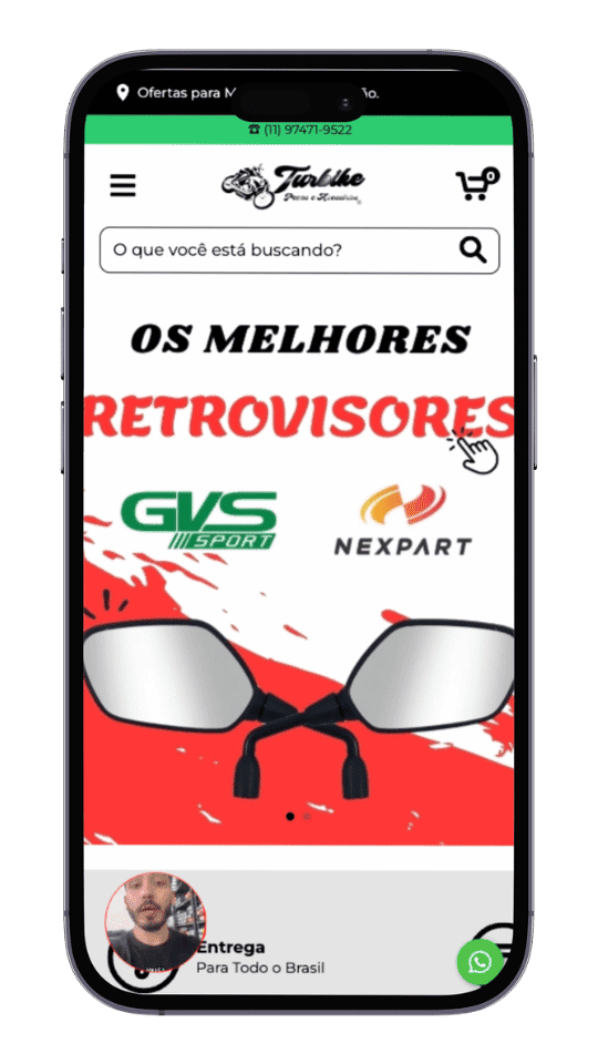 O vídeo é mostrado ao visitante do seu site em uma miniatura flutuante sobre a página com uma chamada em destaque, ao clicar, é aberto para visualização com elementos de interação como link de produto relacionado, botão de curtir, comentário ou chamada no whatsapp.